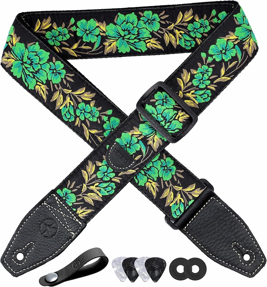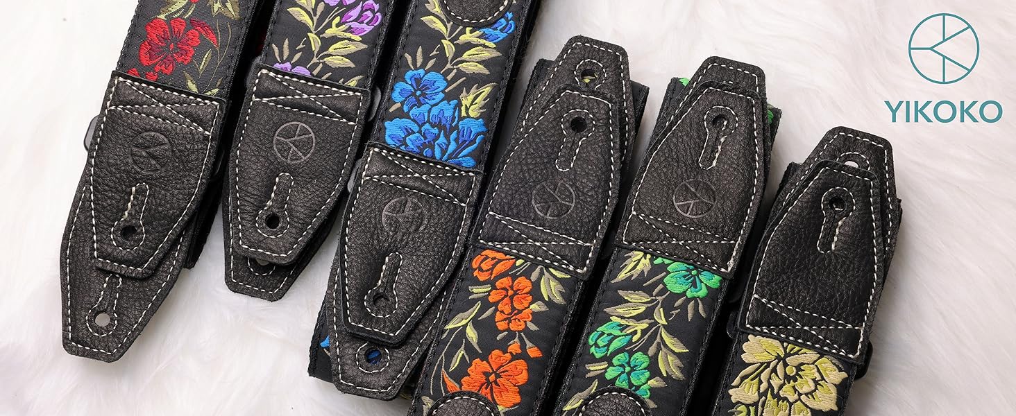【SPECIAL PATTERN】-YIKOKO guitar strap has excellent appearance, personalized pattern with black leather end matching, retro and fashionable. A variety of colors are available to meet the individual needs of people of different ages. Cute guitar plectrum pocket design, more functional.