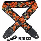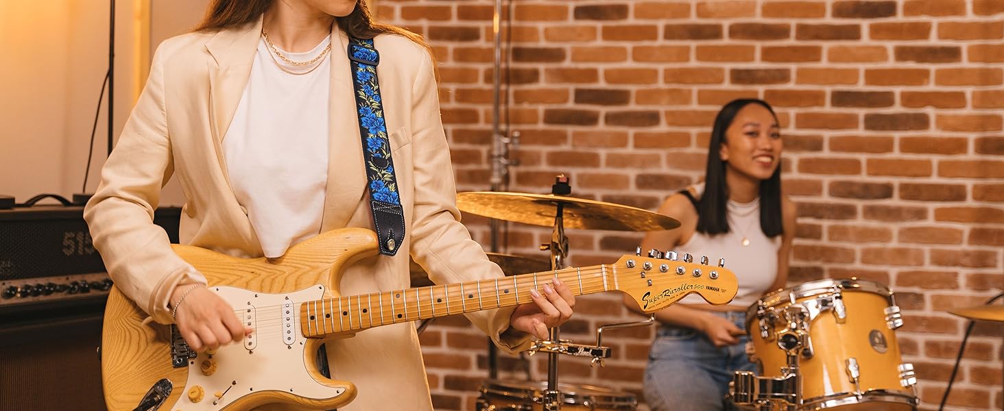 【SECURITY】-Double layer full grain leather ends, soft leather easy to install, attached with plastic buckle, no need to worry about any metal scratching your guitar, 2 inches (about 5.1 cm) wide, the strap body is sewn by double layer of fabric, the bottom side is thick cotton woven strap, comfortable and firm, even for long time use will not make your shoulder sore.