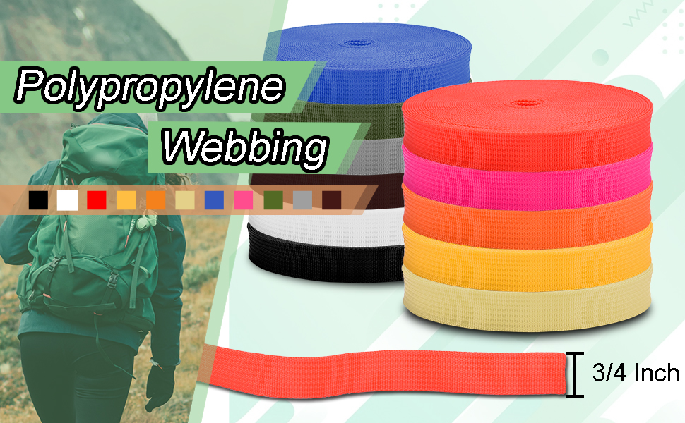 【Heavy duty Polypropylene strap】 Poly webbing strap 3/4 Inch wide, 0.04 inch thickness . 12 yards a roll and 11 colors.Made with a tight weave,durable, strength,tear-resistant.Suitable for prolonged outdoor use.