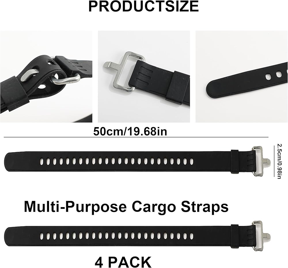 Costyleen 4-Pack Silicone Straps: This set includes 4 reusable utility straps made of flexible silicone. Each strap with buckle measures 20 inches, providing a complete solution for your securing straps needs.