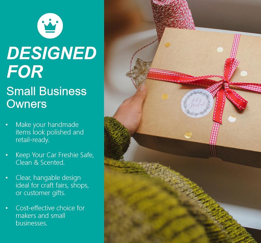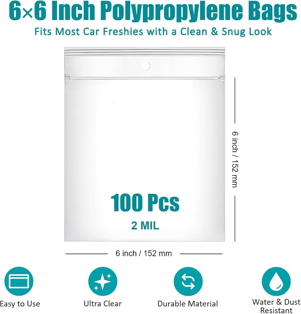 Perfectly Sized for Most Car Freshies:Measuring 6 x 6 inches, our bags are designed to fit the majority of car freshie shapes and sizes based on market research. The clean, minimal packaging