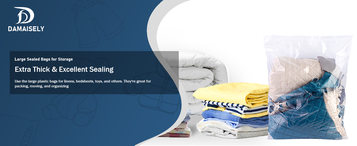 【Multi-Purpose Large Plastic Bags】Our transparent large plastic bags can easily pack all of your toiletries, hair tools and more into separate bags and then store them in your suitcase or overnight bag, these bags will also protect your clothes from any spills that may occur. store away seasonal clothes when not in use and other toys to keep your home organized and clutter free. Great for TRAVEL, SHIPPING, MOVING, STORAGE