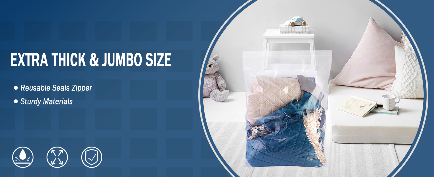 【Resealable Large Storage Bags】These bags with a sturdy zipper can provide sealing and protection. Which can keep your items dry, fresh, and also can completely reject external odors from entering the bag. Great Ideal to store away toys, blankets, layette, towels, shoes, books & games no longer in use. Organize your garage, attic, pantry or laundry room.