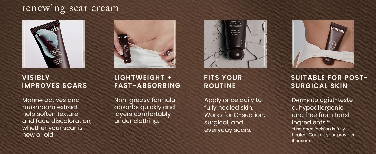 Nemah Restorative Scar Treatment, C Section Recovery, Scar Cream for Surgical Scars, Ideal to Reduce the C Section and Acne Marks, Dermatologist Approved, Antioxidant Rich, Vegan Formula, 1 oz