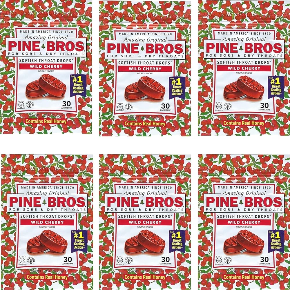 The Pine Bros drops for adults offer sore throat comfort with softish throat lozenges that gently dissolve and coat the throat. Featuring a smooth wild cherry flavor, these cherry drops help support throat calm during sore throat