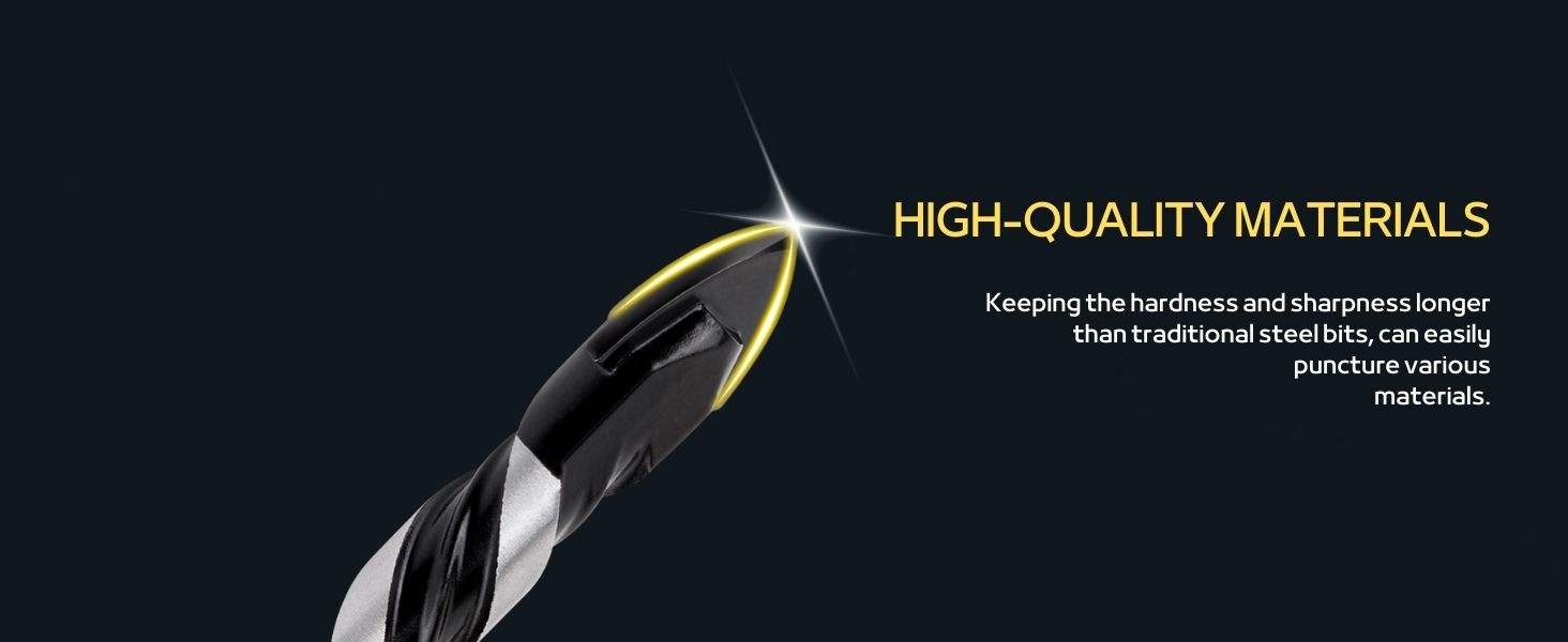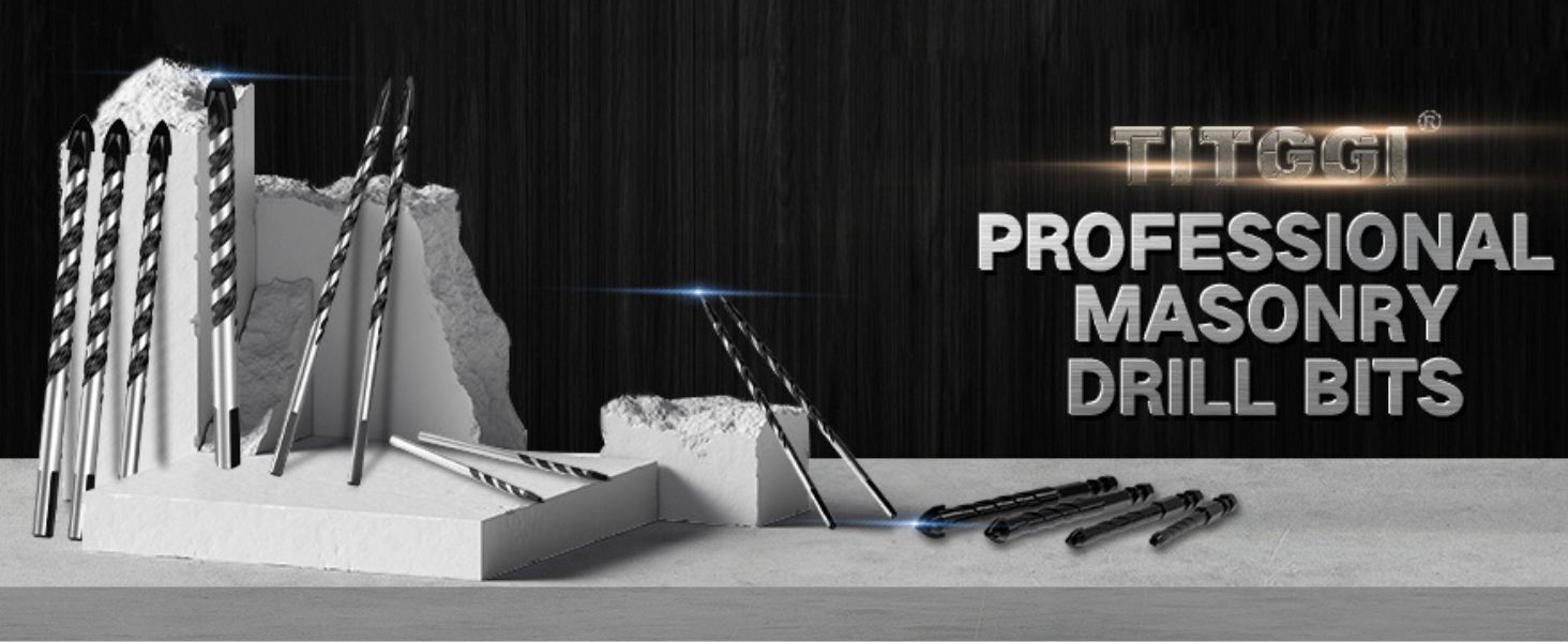 HIGH QUALITY DRILL BIT SET; TITGGI Concrete drill bit, Industrial strength carbide drill bit tip, excellent abrasion resistance, make the drilling much more easier. this masonry drill bit can easily penetrate various material (glass, ceramic tile, marble, wood, travertine, ceramic, stone, concrete, brick, hard plastic, cement, etc.)
