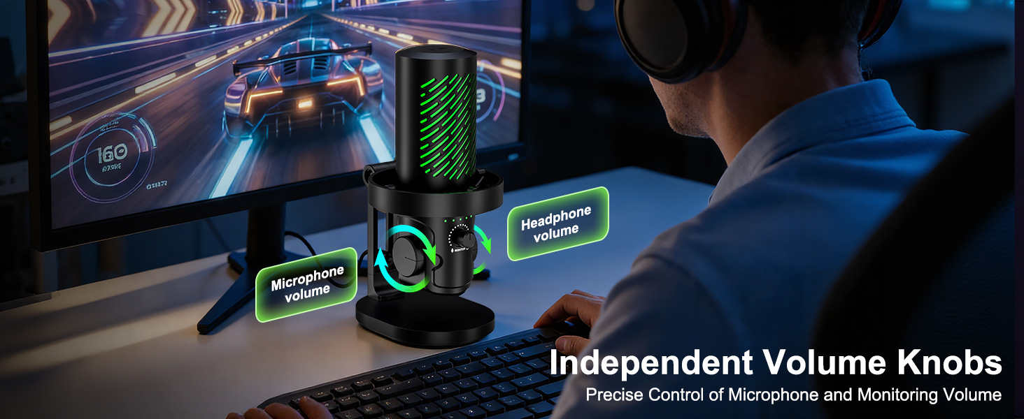 【Zero-Latency Headphone Monitoring with Full Controls】 Real-time 3.5mm monitoring with rotary knobs for precise gain adjustment, headphone volume, and mic/computer balance– prevents clipping, echo, or delay; great for pro-level streaming, gaming, and voiceover work.