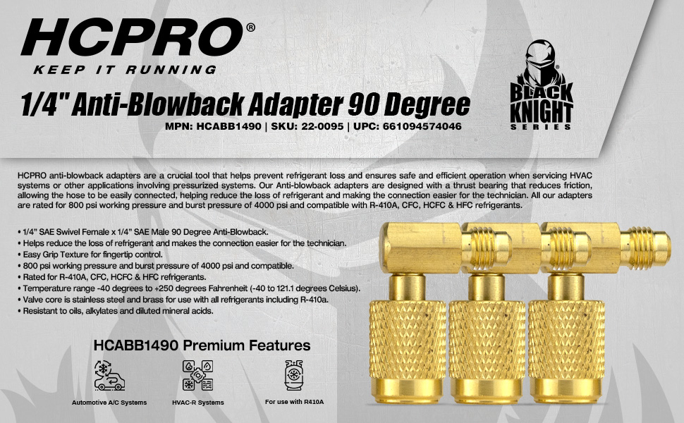 HCPRO HCABB1490 90° Anti-Blowback Adapter 1/4" Fem x 1/4" Male Swivel