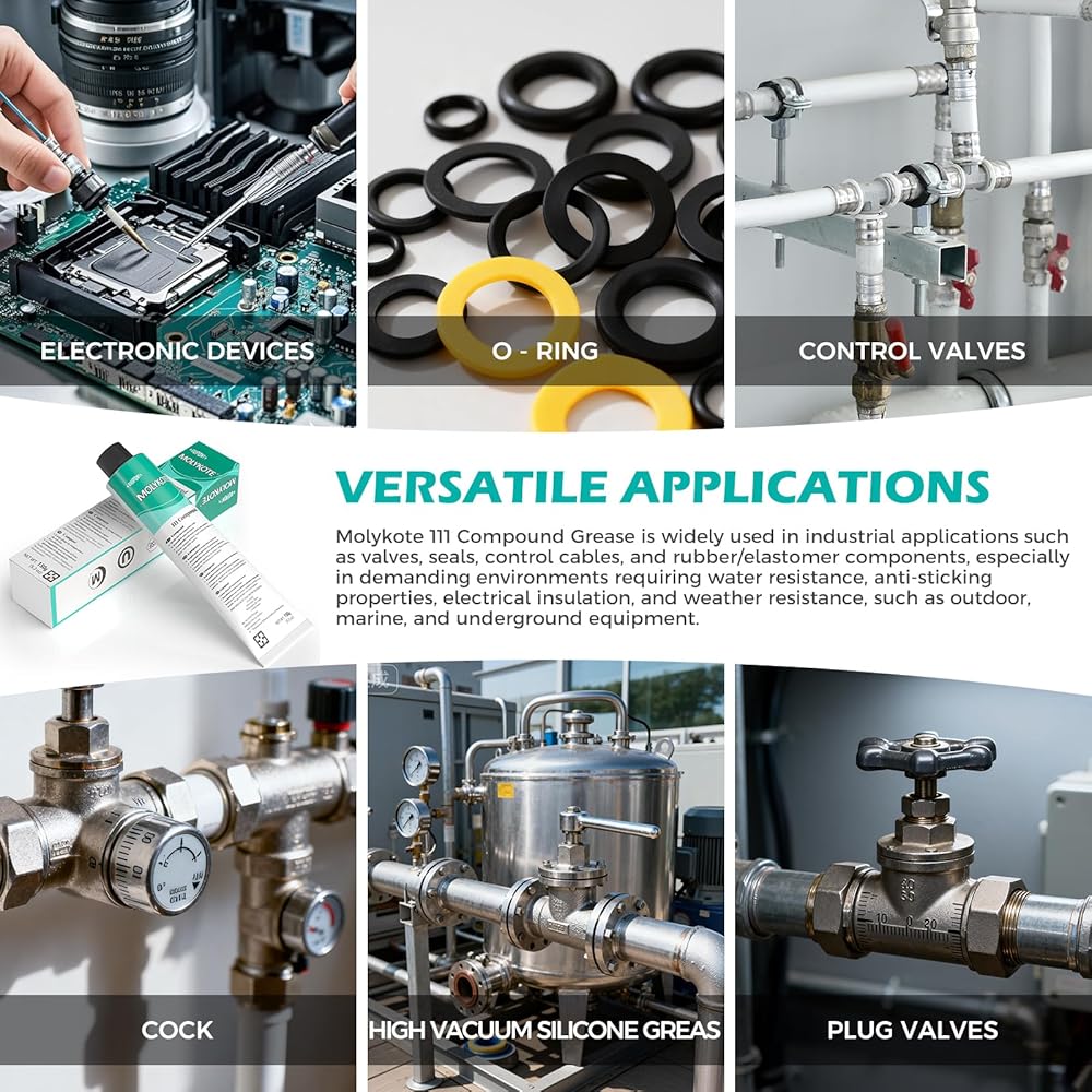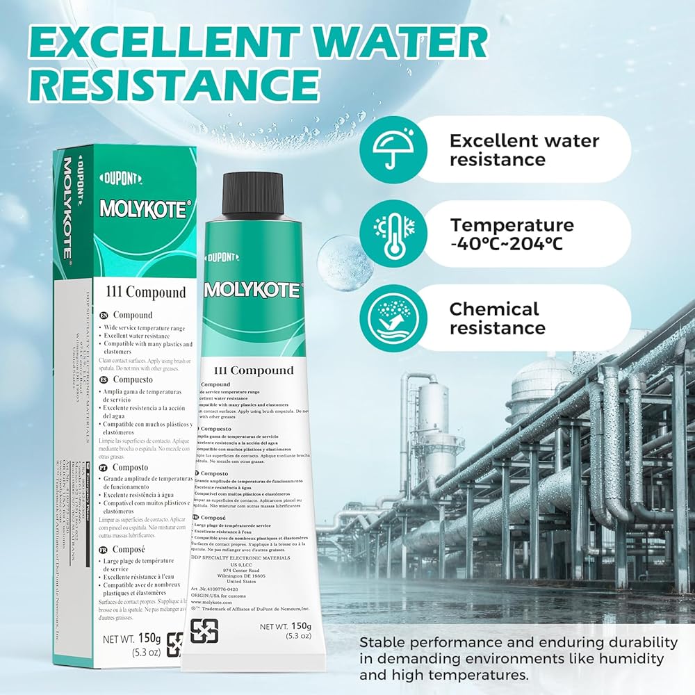 Molykote 111 Compound 150g 5.3oz, General Purpose O-Ring and Valve Lubricant Electrical Damping Medium Anti-Adhesion and Sealing Water Resistance Wide Temperature NLGI Grade 3-4 Translucent White