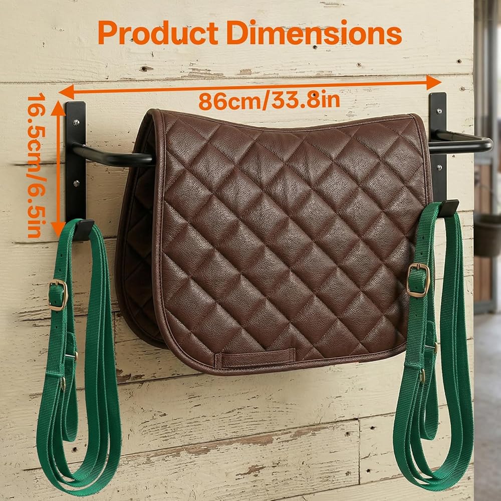Proper Size: The horse blanket rack is 33.8 inches long and measures 6.5 inches from the wall, which provides enough space to hang thick blankets
