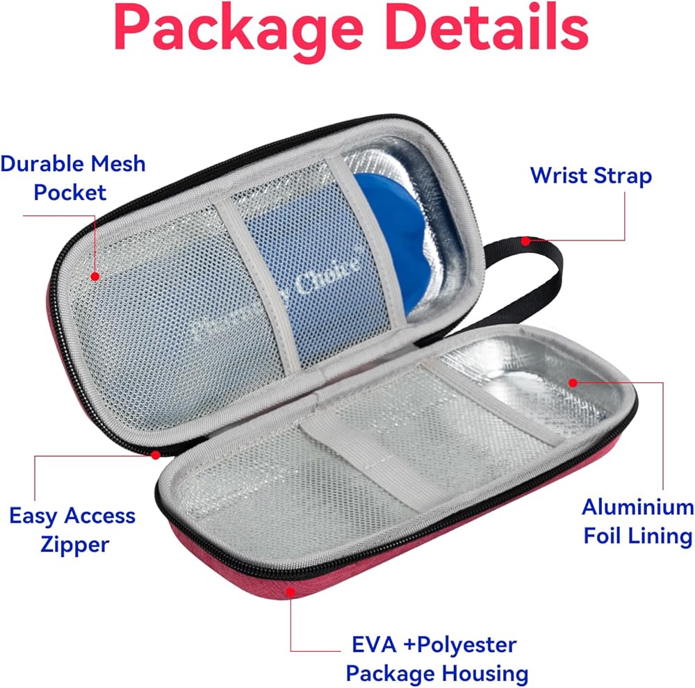 Water-Resistant Quter Layer: Designed with a water-resistant exterior to protect insulin from unexpected spills or rain, providing peace of mind.