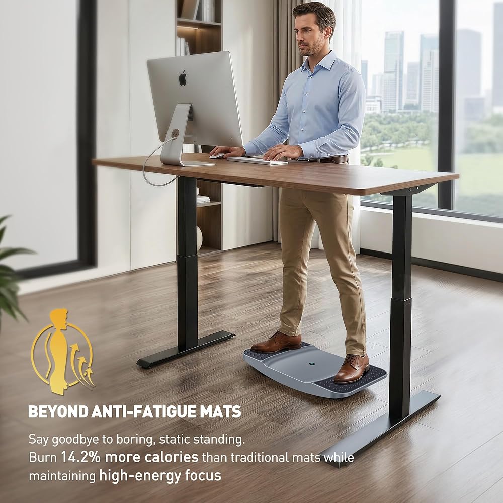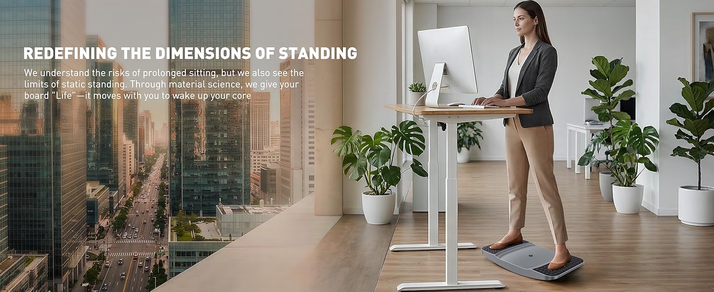 FIGURE-8 FLUID MOTION: The board's resilient material is perfect for tracing small figure-8 patterns while you work. This side-to-side lateral tilt (8-15°) combined with the board's natural "give" encourages gentle micro-movements. It's an ideal standing mat anti fatigue for work solution that improves circulation and prevents lower-back stiffness during long office hours.