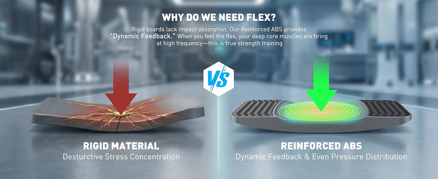 DYNAMIC KINETIC RESILIENCE: Unlike rigid wooden boards, our specially engineered reinforced ABS core is designed with intentional flexibility. This "active flex" mechanism creates a responsive surface that deforms slightly as you move, forcing your core and stabilizing muscles to engage more deeply. It turns simple standing into a high-efficiency balance training session.