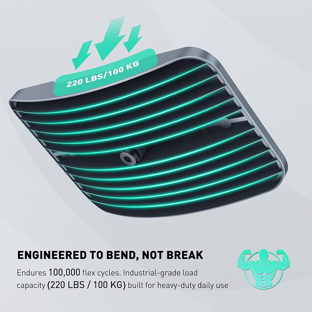 DURABLE BEYOND LIMITS: Do not mistake flexibility for weakness; this professional standing desk balance board supports up to 220 lbs. The high-toughness ABS polymer is tested for thousands of flex cycles, ensuring it won't crack or lose its bounce. It offers a safer, more beginner-friendly experience than 360° wobble boards without the bulk of heavy wood.