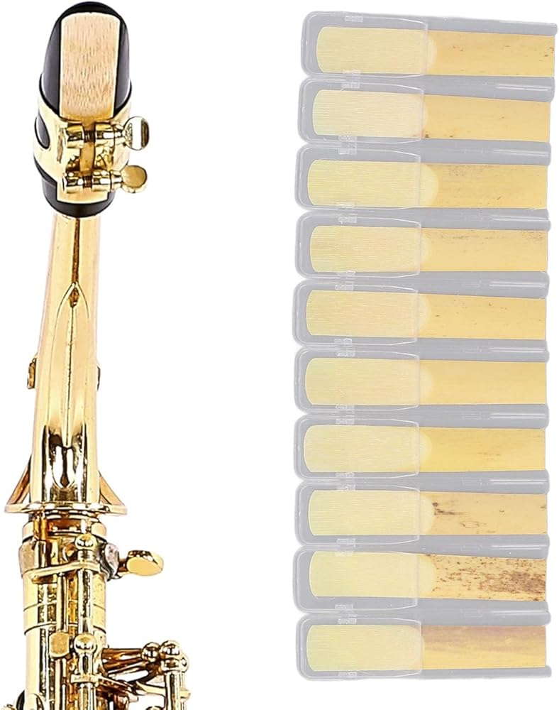 [Exceptional Sound Quality] Crafted from premium reeds, these professional sax reeds deliver unparalleled sound clarity and tonal richness. the advanced manufacturing process enhances elasticity, ensuring longer-lasting reeds that provide a comfortable playing experience. for achieving a wide range of musical expressions, these reeds are a must-have for any saxophonist.