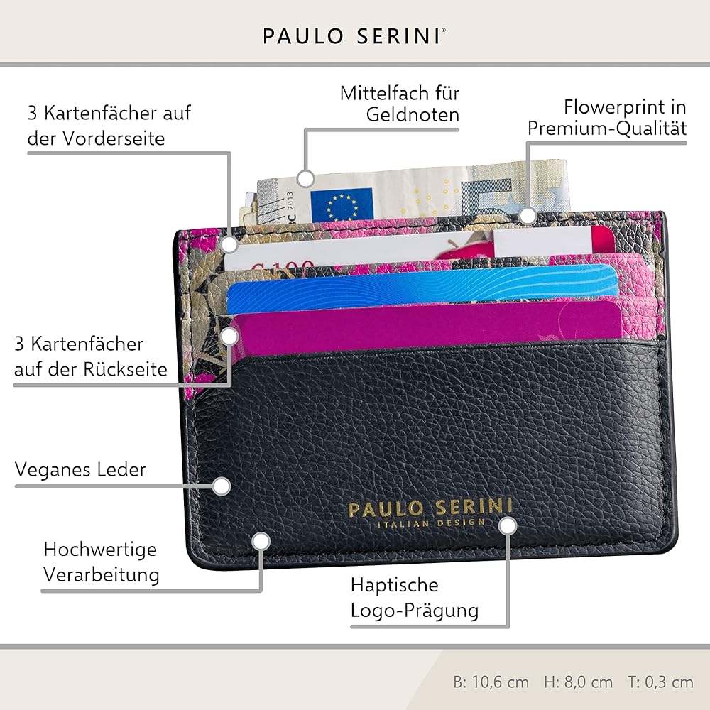 ⛲ ITALIAN DESIGN: The design of our beautiful PAULO SERINI cardholders for women and men is inspired by the great names of the Italian fashion scene. Elegant colors, sleek design and clean lines - with the PAULO SERINI small wallets for women and men, easily transition from day to night.