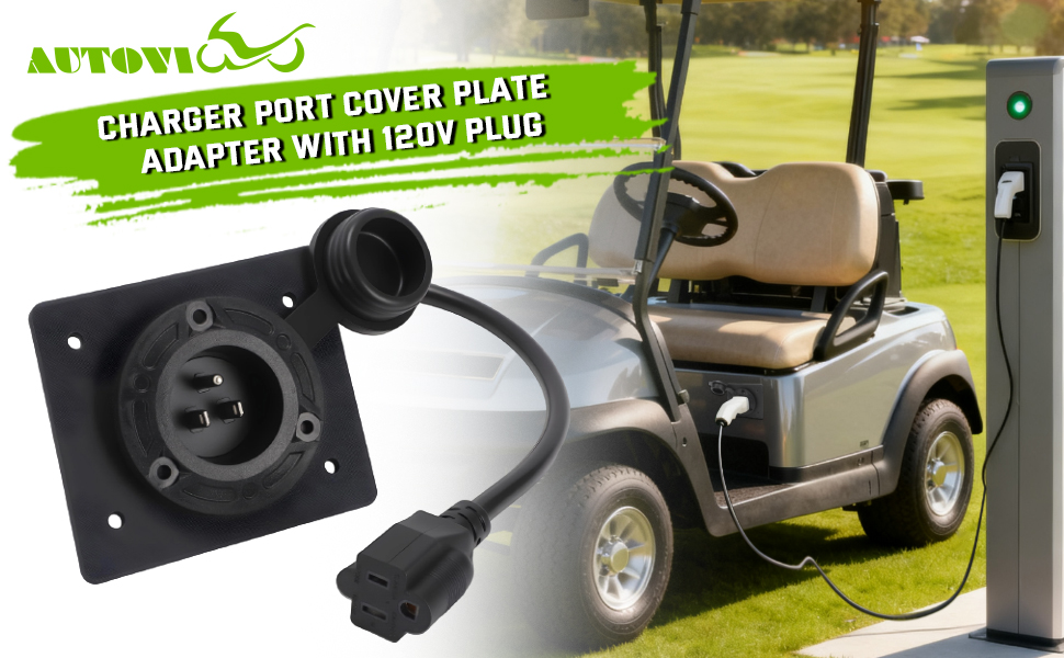 AUTOVIC Charger Port Cover Plate Adapter with 120V Plug for Lithium Battery Compatible with EZGO TXT36 Golf Cart