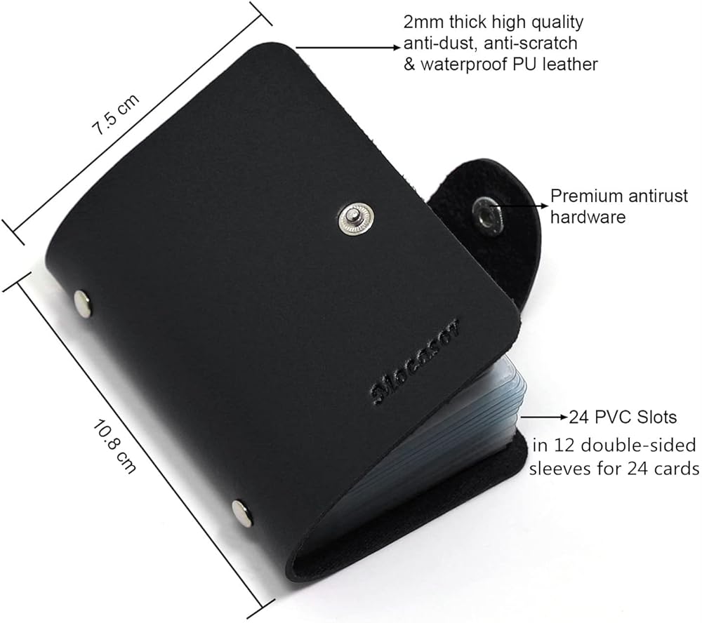 - Material: soft PU leather outer, sturdy PVC insert slots, & premium antirust press studs