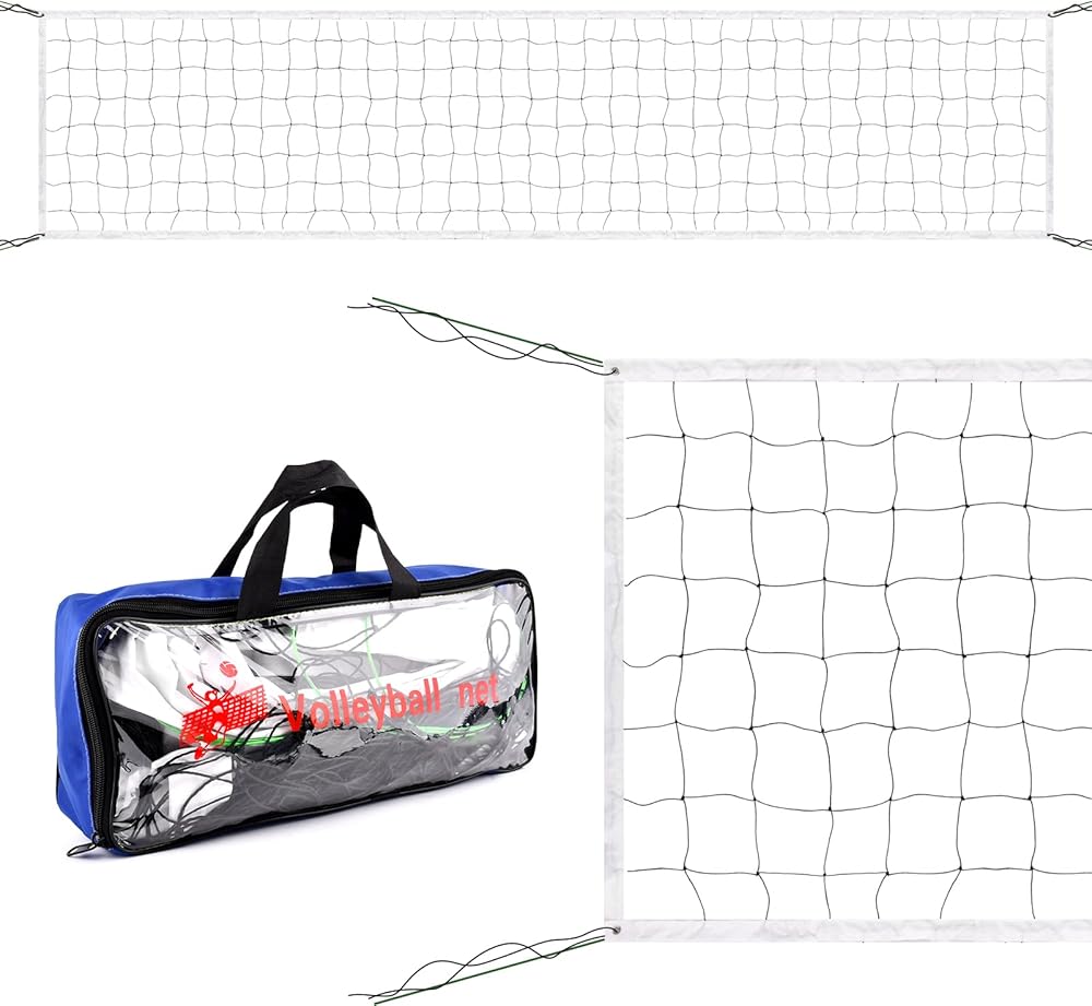 【HEAVY DUTY MATERIAL】The match standard volleyball net is suited for players of all levels.Volleyball netting is constructed with durable polythene and canvas edge. Heavy duty badminton nets, super fast, safe and solid on any surface.