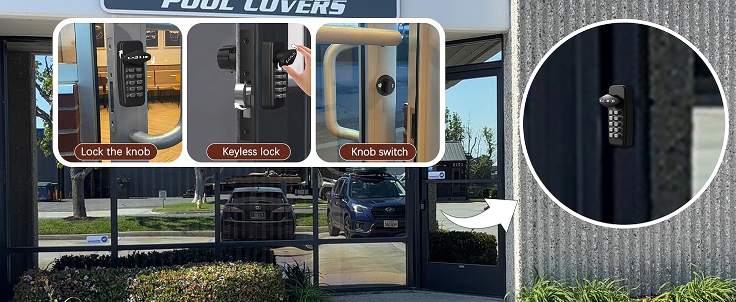 100% Keyless Keypad Storefront Door Lock: Purely keyless keypad commercial door lock which locking & unlocking keyless. Changing the code is effortless, and installation is incredibly simple to allow easy removal for password updates.