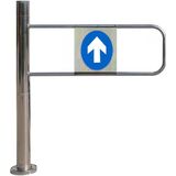 The one-way design effectively guides pedestrian flow, making it ideal for high-traffic areas. The base is reinforced with expansion bolts to prevent tipping and ensure a secure installation.
