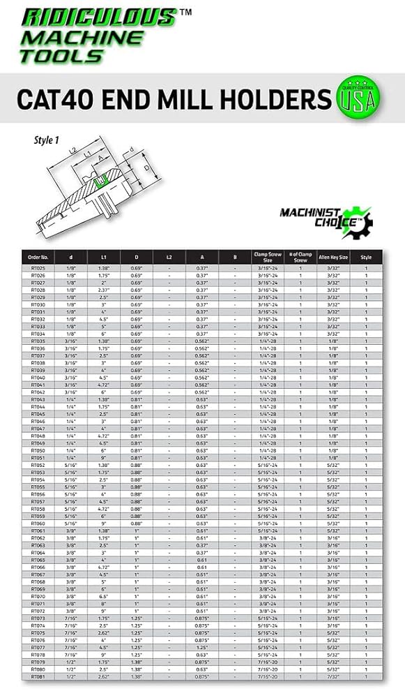 High Precision CAT 40 END MILL Holder, Taper to Bore Runout