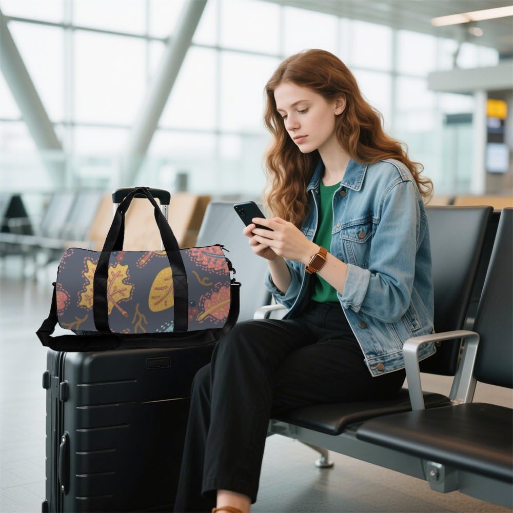 Autumn Leaf Berry Packable Workout Bag For Men Women Oxford Tote Bags Adjustable Shoulder Strap, Convertible Carry Backpack Girly Duffle Bag For Work Travel Gym Backpack With Shoe Compartment