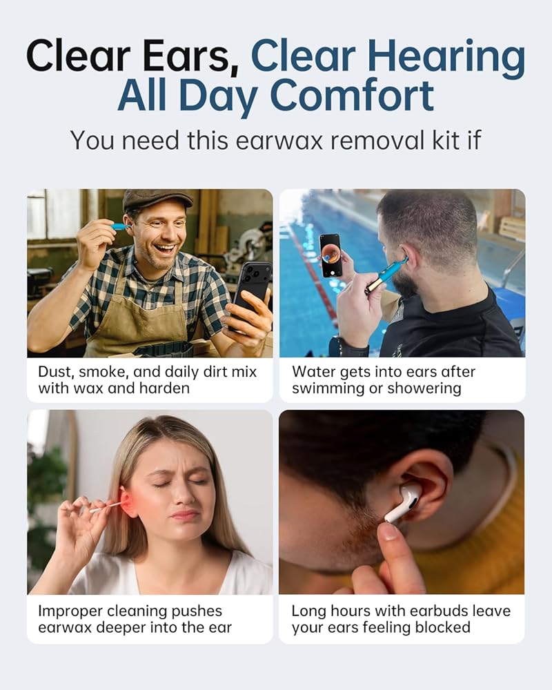 Painless Visual Ear Cleaning Kit: Unlike traditional water washing cleaner or cotton swabs, our ear pick tweezers are gentler, reducing ear canal wall contact to protect delicate skin. Features a stable 2K HD ear camera with light, it precisely locates earwax for quick, easy removal. For stubborn wax, pair the visual ear dropper with your own earwax softener (not included) for easier cleaning. The ear dropper and ear tweezers with camera are the perfect companion for ear issues, delivering a safe, pain-free ear care experience.