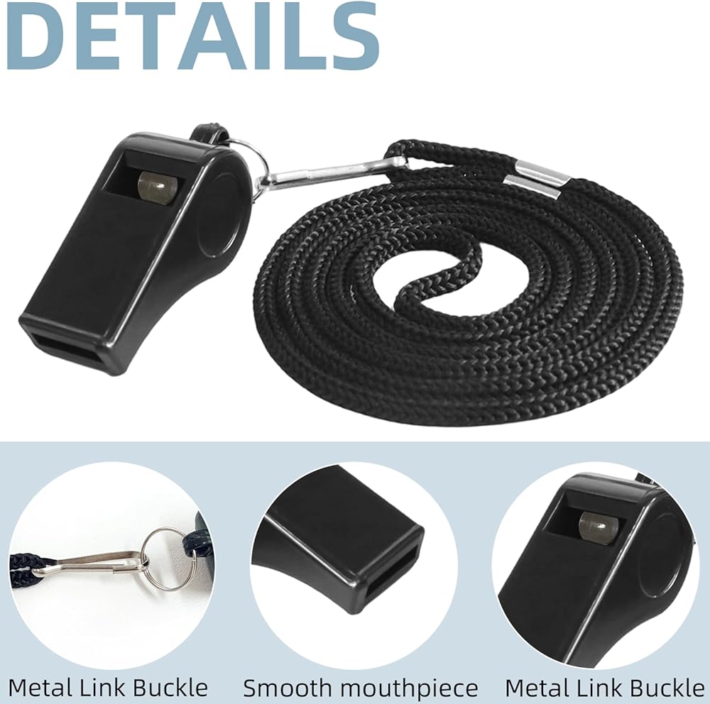 Features:【What You Get】 You will receive 4 black plastic sports whistles.The coach whistle measures 2 in(5 cm) in length and 0.67 in(1.7 cm) in width,the lanyard is approximately 19.7 in(50 cm) long.This high-value whistle emergency set meets the diverse needs of coaches,teachers,and event organizers.