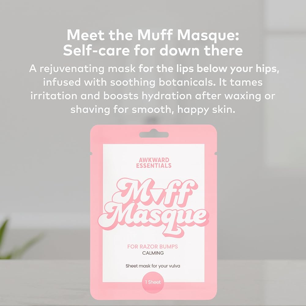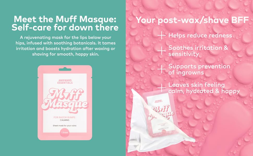 Easy to use: Remove and unfold the vaginal mask, cover vulva and guide mask down. Once applied, sit back, relax for 15-20 minutes, and let Muff Masque do the rest!
