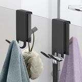 5. 【Sleek Design in Two Finishes】Choose from stylish black shower hooks or a classic silver finish to complement any bathroom decor. Their minimalist look adds a touch of elegance while providing practical storage for towels, robes, or even kids' swimsuits.