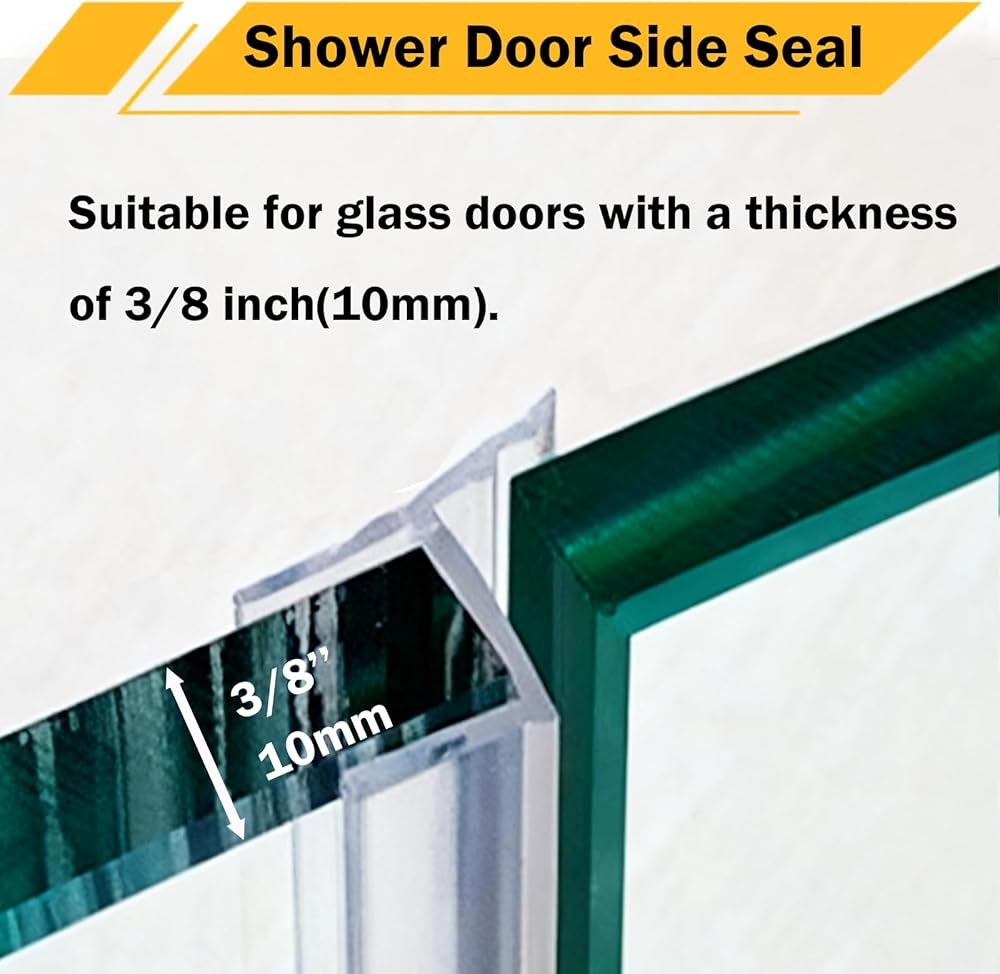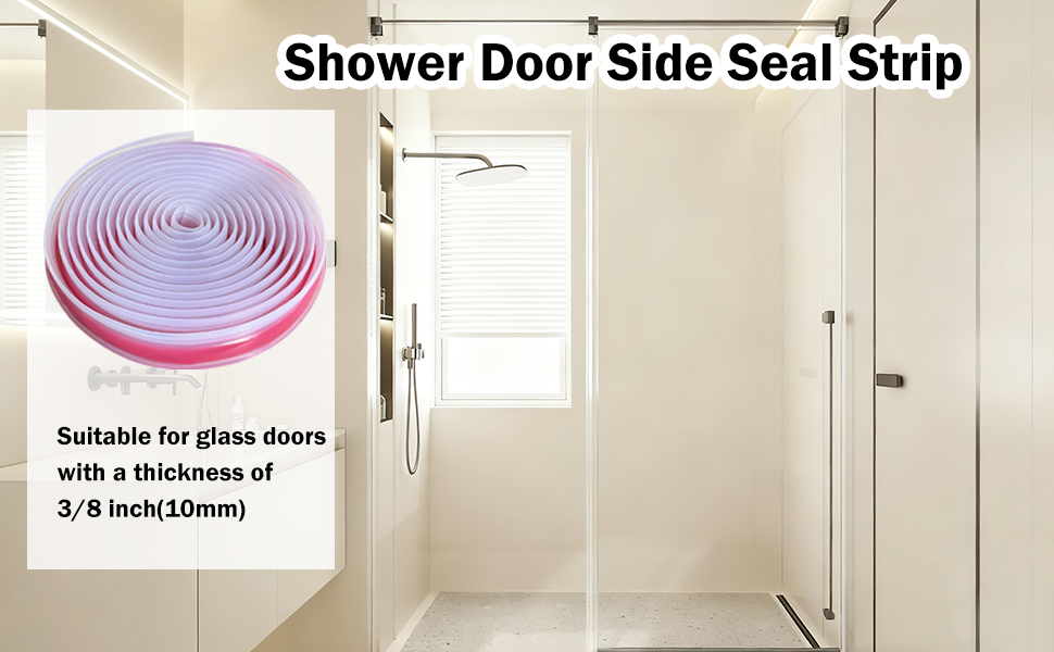 Size information: The length of this shower door seal strip side is 10 feet (3m), suitable for glass doors with a thickness of 3/8 inch(10mm). Can meet the needs of most shower glass doors.