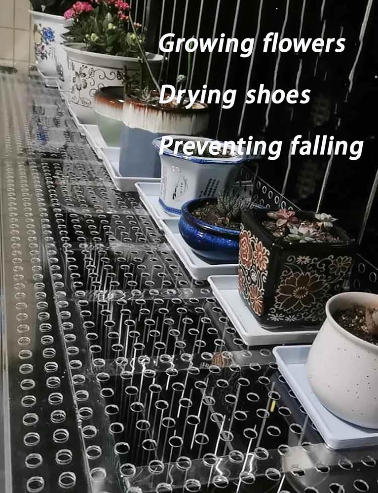 Discover the versatility of our Perforated Polycarbonate Sheets, designed to enhance your living space while providing essential protection. Crafted from durable polycarbonate, these transparent sheets are lightweight yet robust, making them ideal for various applications such as balconies, railings, and garden areas. **Product Features:** - **Durable Construction:** Made from high-quality polycarbonate, these sheets are designed to resist scratches and tears, ensuring long-lasting use. - **Versatile Applications:** Perfect for securing balconies, windows, and even garden fences. Use them to protect plants, shoes, or as a pet barrier without compromising on aesthetics. - **Space-efficient Design:** The mesh pattern not only adds a decorative touch but also allows for airflow and light, maintaining an open feel while providing safety. - **Easy Installation:** Lightweight and flexible, our perforated sheets can be easily installed in various settings, adapting to your needs with ease. - **Edge Reinforcement:** Features reinforced edges for even load distribution, providing additional safety and durability. **Ideal Use Scenarios:** Transform your balcony into a safe haven for your plants or pets, create a stylish barrier around your garden, or use them as protective panels for your windows. These sheets blend functionality with a modern look, making them a perfect choice for DIY enthusiasts and homeowners alike. **Package Includes:** - 1 x Perforated Polycarbonate Sheet (shipped in rolls) Please note: Due to manual measurement, a dimensional tolerance of ±1-2 cm may apply. For best results, flatten the sheets with heavy objects upon arrival, which won't affect their functionality. Upgrade your space with our Perforated Polycarbonate Sheets and enjoy the perfect combination of style, safety, and practicality.