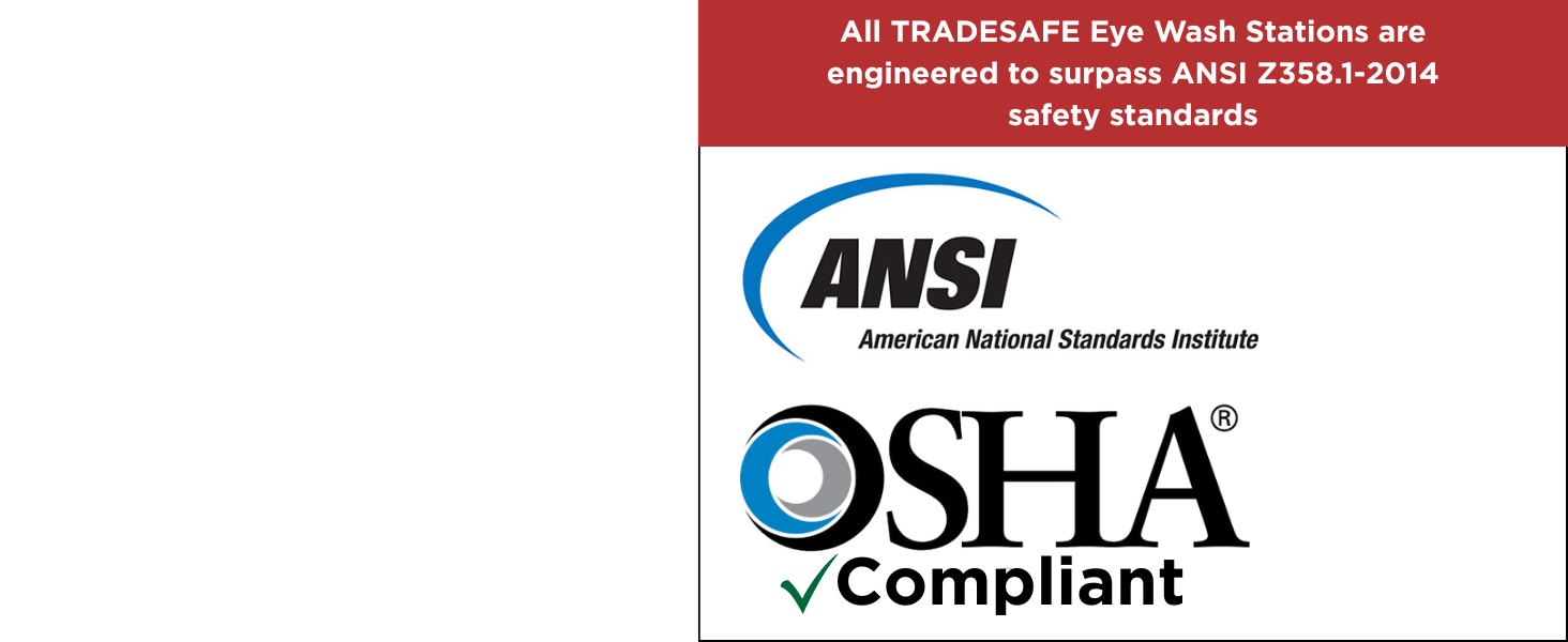 • ANSI Compliant - Eyewash stations OSHA approved rigorously developed and tested to exceed stringent ANSI Z358.1 standards, ensuring maximum workplace compliance and expert-level safety you can trust