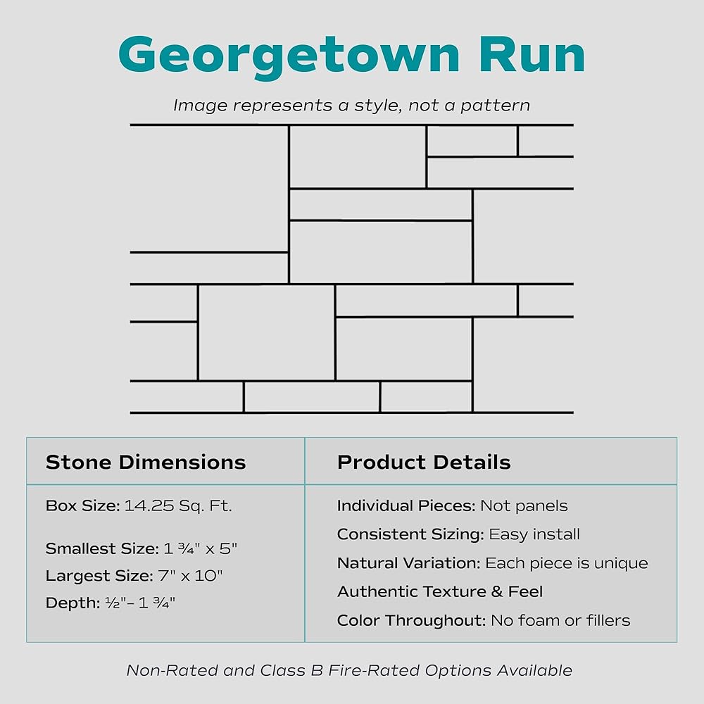 Evolve Stone is the first stone cladding that can be face nailed in the same fashion as traditional siding, reducing installation complexity and time dramatically. Like real stone, it is colored throughout, allowing it to be cut to fit on-site while maintaining the highest appearance standards. The ease and workability of the product is unprecedented. No specialty tools and training are needed to install Evolve Stone. Easily manipulate, cut, and texture the product with your standard woodworking tools. This stone is lightweight, at just 2 lbs. per square foot, but extremely durable, standing up to impossible wind speeds, salt spray, UV exposure, and freeze-thaw cycles. Each box is pre-portioned with engineered shapes allowing the pattern to appear naturally as you install. No need to sort and lay out the stones beforehand. We offer a class B fire rated product in each style and color. Coverage: Flats (loose stones) cover 14.25 sq. ft.; Sills cover 25 lin. ft.