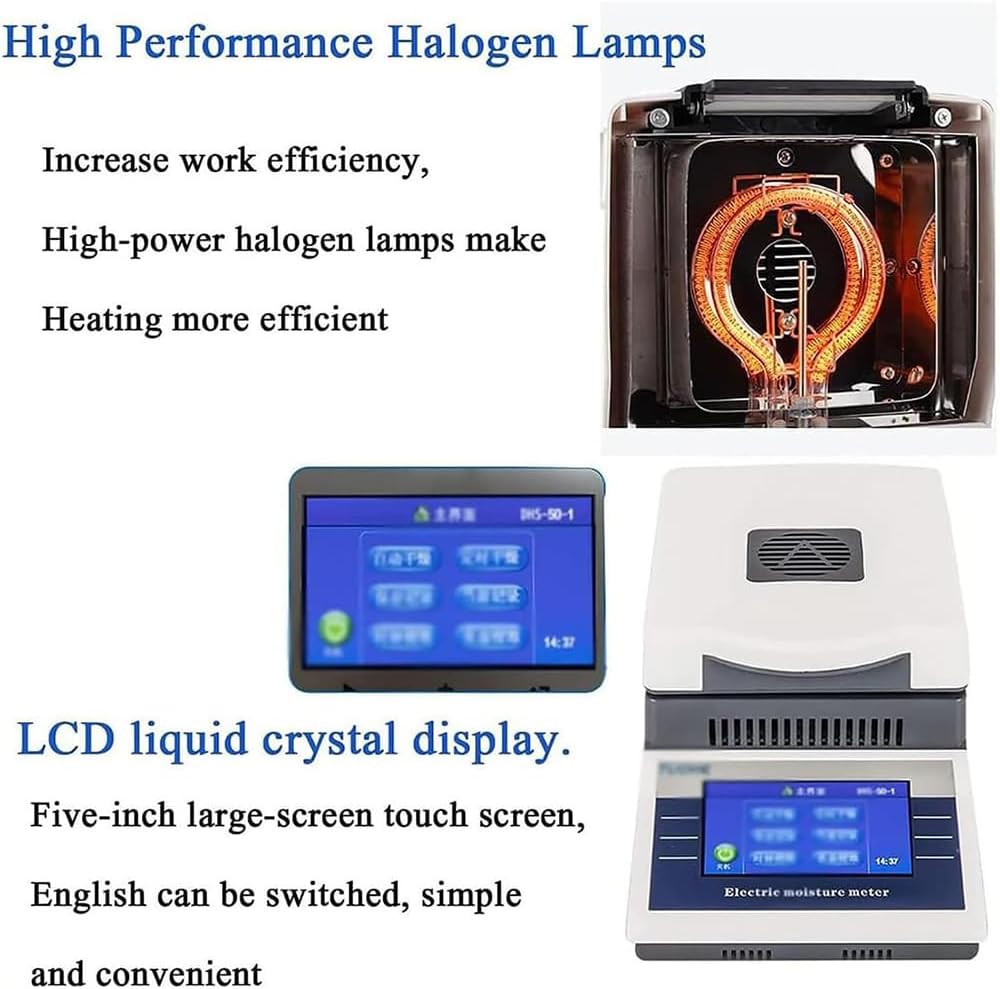 ✔ Large capacity of 50 grams, measurement accuracy up to 0.001g, widely used for moisture measurement of grains, tea, wood, cosmetics, Chinese herbal medicine, soil and other items