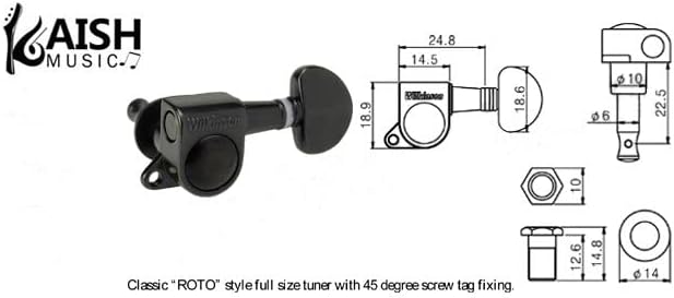 Fits most 3x3 configuration electric or acoustic guitars with 10mm tuner Holes and 45 degree fixing tag