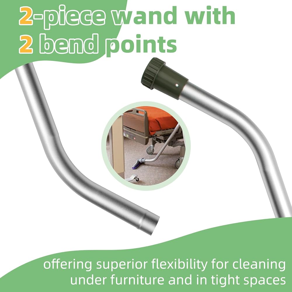 Optimal Versatility: This for ProTeam backpack vacuum wand features a 56-inch long, 2-piece wand with two bend points for enhanced maneuverability, offering superior flexibility for cleaning under furniture and in tight spaces. The dual bend points combined with the button lock mechanism enable secure extension and stable positioning during operation, improving cleaning efficiency in commercial environments.