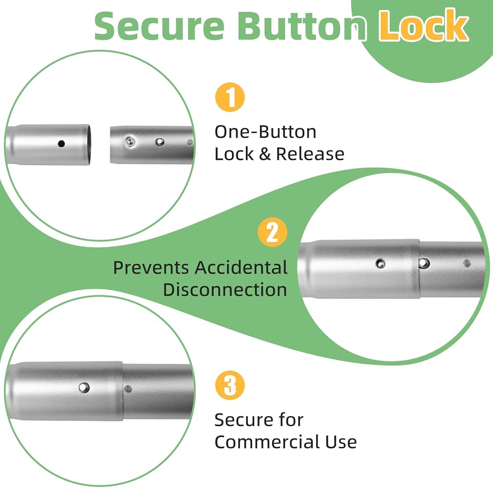 Secure Button Lock System: Features a reliable button lock mechanism that makes assembly and disassembly quick and easy. This 2 piece wand locks securely into place during use, preventing accidental collapse.