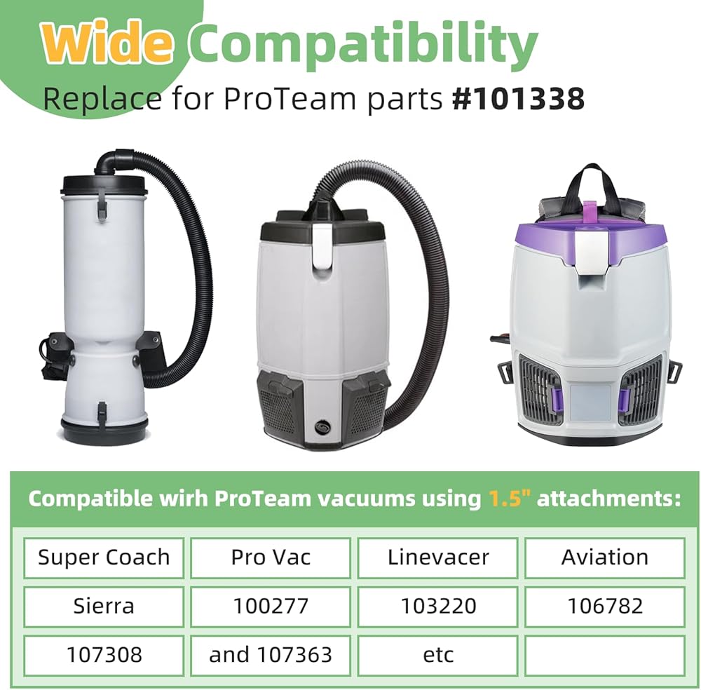 Wide Compatibility: Replace for ProTeam parts #101338. This backpack vacuum commercial wand is engineered to fit for ProTeam commercial machines using 1 1/2" attachments. It is compatible with models including Super Coach, Pro Vac, Linevacer, Aviation, Sierra, 100277, 103220, 106782, 107308, and 107363 – ideal as a central vacuum wand replacement or for upgrading existing systems.