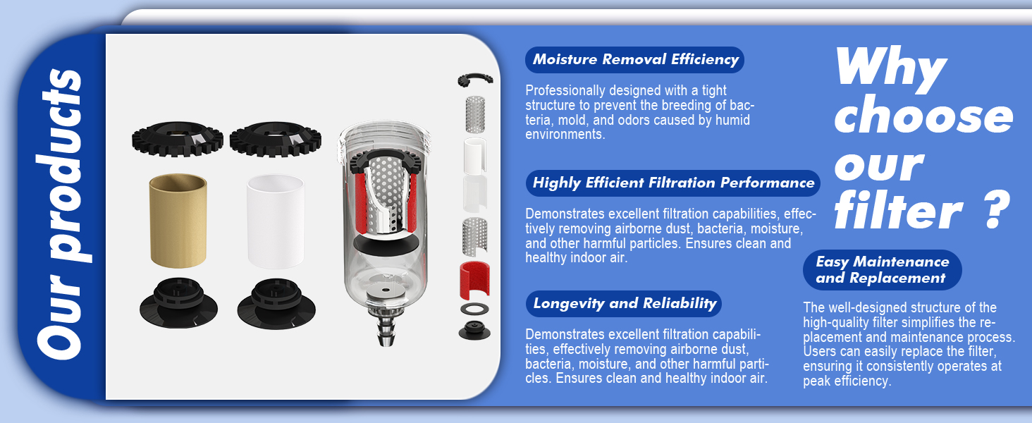 【 WIth Ball Valve】Three stage air drying system is equipped with a ball valve switch and double threaded fittings to make it easier for you to control the switch.