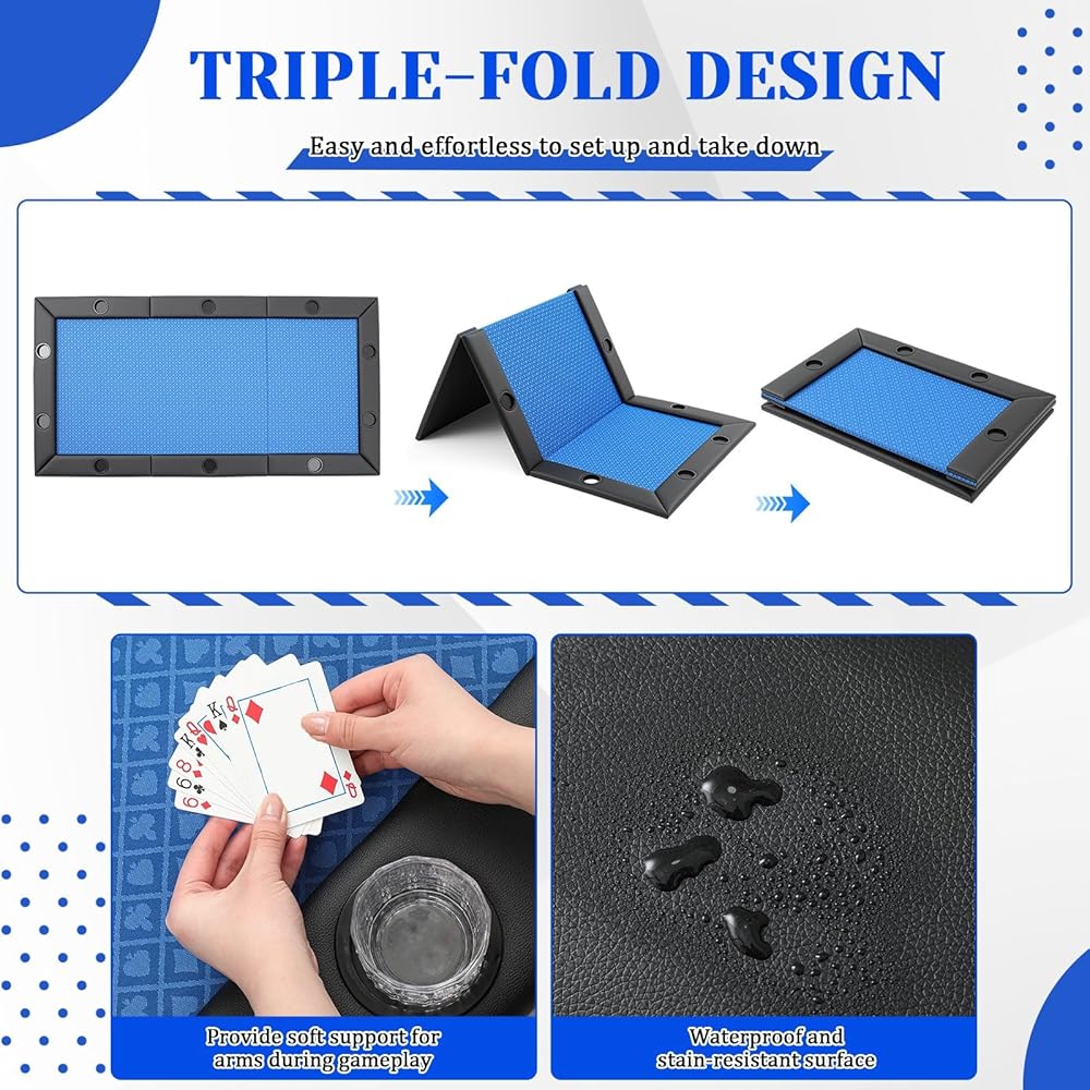 This product functions as both a protective poker table topper and a complete play surface. Its adaptable design works with various tables, offering the utility of dedicated folding poker tables without requiring a single-purpose piece of furniture.