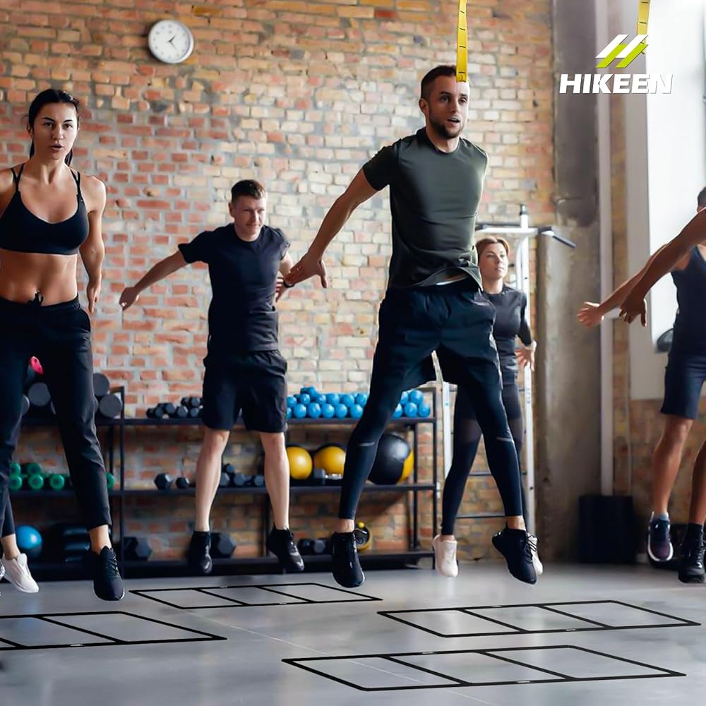 🏃♂️ Durable Rubber Agility Ladder(US PATENT): The Hikeen Agility Ladder is crafted from high-quality rubber, ensuring long-lasting durability for intense training sessions. With dimensions of 52.55 x 18.3 inches, this speed ladder is perfect for athletes of all ages, offering a non-slip surface that protects your feet while enhancing performance.(ps: It can be left to stand on a flat base until it regains its shape)