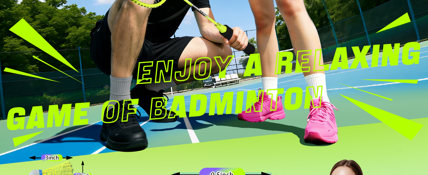 【Nylon Plastic Badminton Shuttlecocks】One set of badminton rackets comes with 4 shuttlecocks, while two sets include 8 shuttlecocks. You can select the rackets and shuttlecocks that meet your specifications. Be careful not to choose the wrong set. The shuttlecocks measure 2.8 inches in diameter and 3 inches in length.