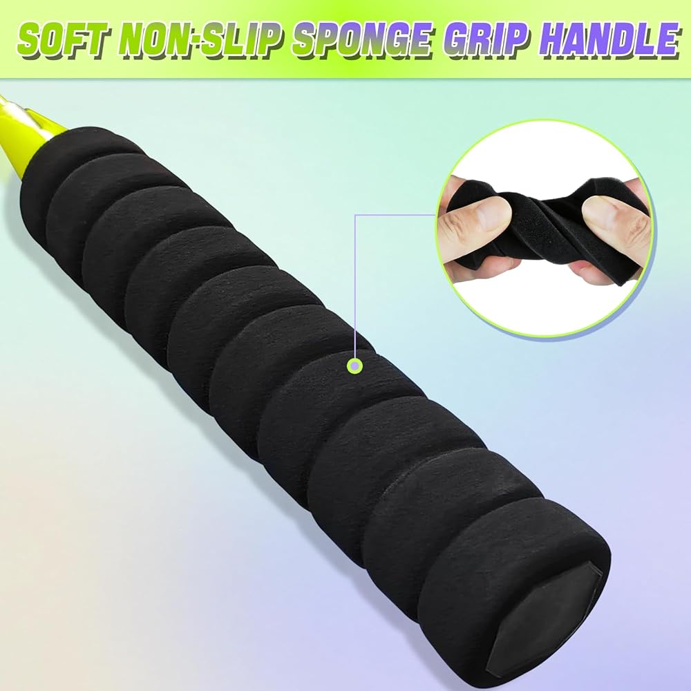 【Non-Slip Soft Sponge Grip Design】No need to apply grip tape after receiving your racket. Frebuta badminton birdies set come with built-in non-slip, breathable, sweat-absorbing sponge grips, eliminating worries about slipping or losing control due to sweaty hands during play. The lightweight badminton set of 2 grip offers comfortable softness.Reinforced joints between the handle and shaft further prevent shaft breakage.