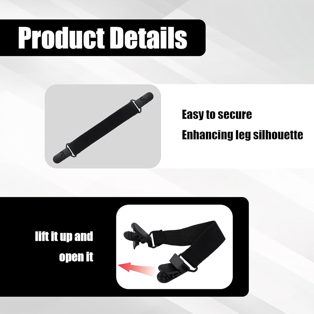 Package content: You will receive 2 adjustable boot strap, which are durable and can be used for a long time. The garter clips pant clips is not only suitable for various types of pants and boots, but also for various scenarios such as bed sheet fixation, cycling, skiing, etc