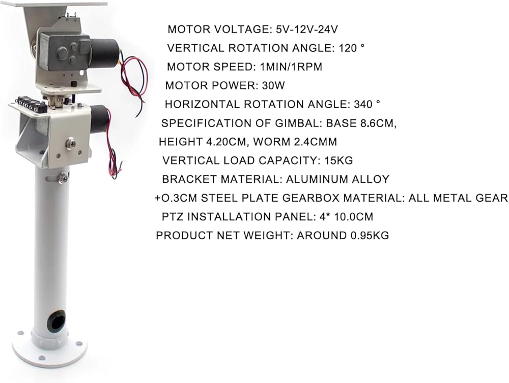 This DIY DC Dual Axis Pan Tilt Solar, Heavy Load High Torque All Metal Worm Gear Motor features a robust design, that ensures reliable operation.
