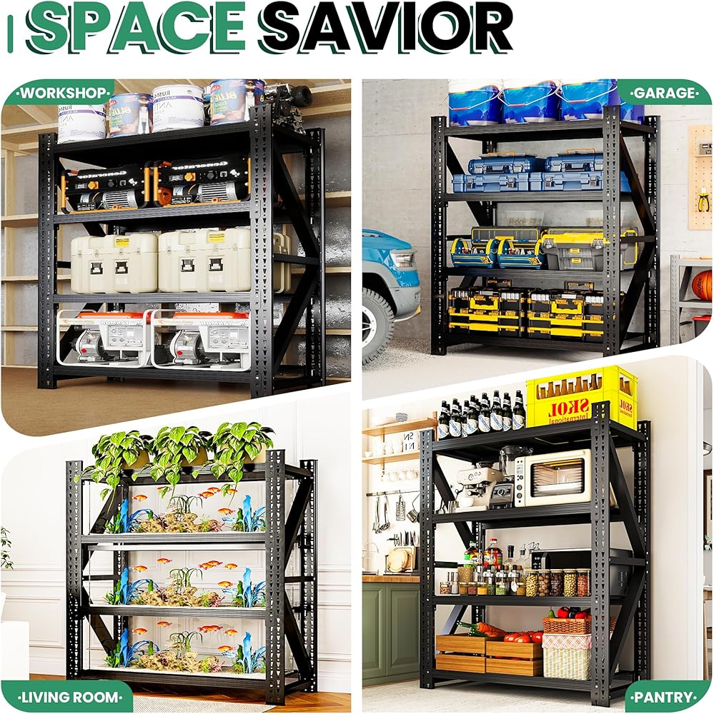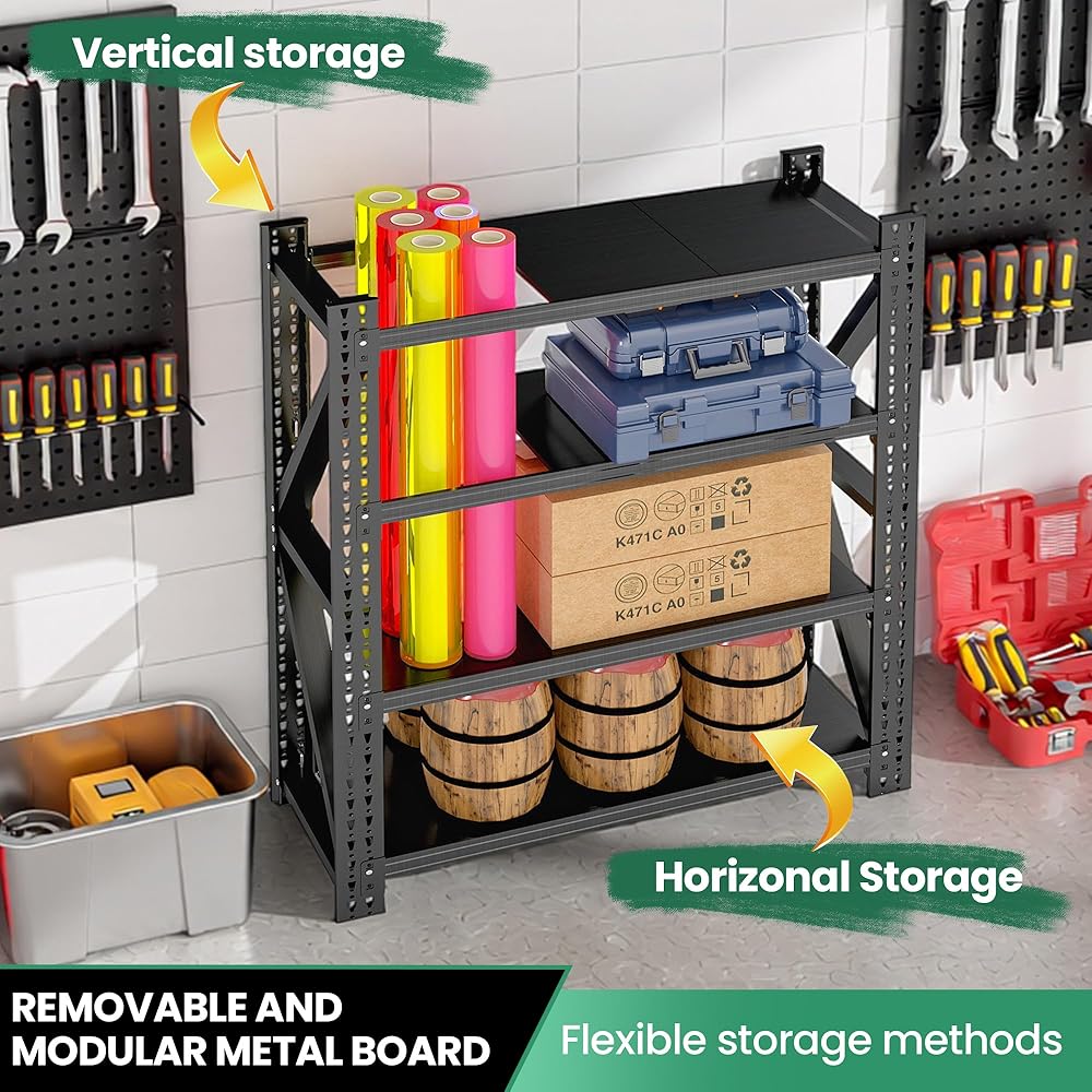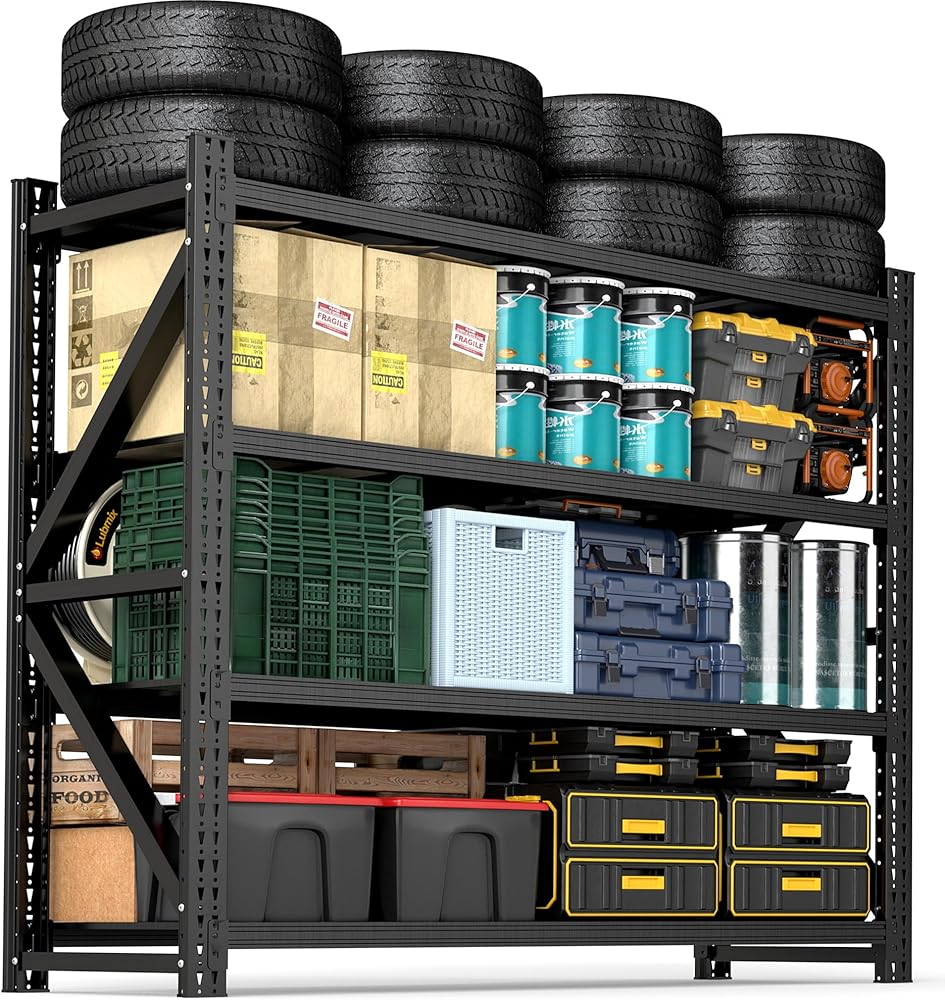4 Tier Heavy Duty Garage Shelving,Industrial Shelving Built for Maximum Weight,Garage Storage Racks Heavy Duty Steel Shelves,Large Capacity Metal Rack for Warehouse,Shop,Basement