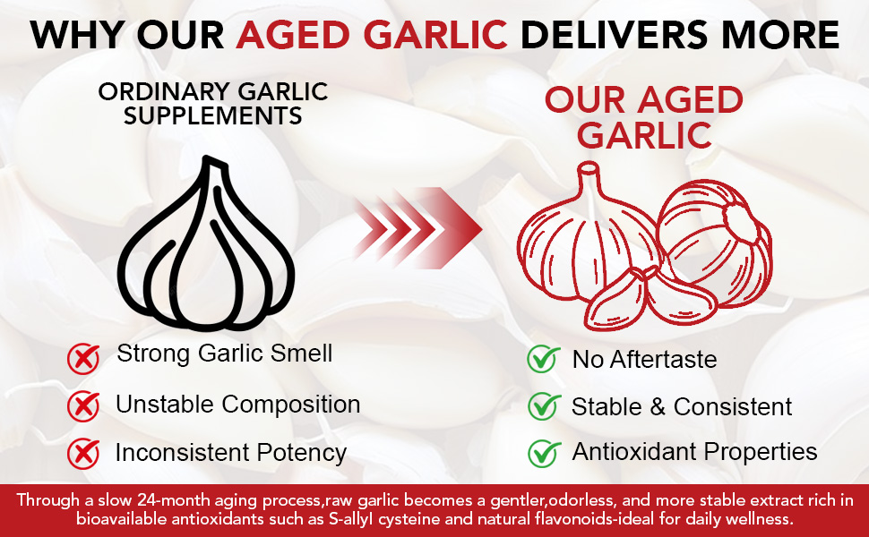24-Month Low-Temp Aging for Gentle Efficacy: Made with organically sourced garlic, our aged garlic extract undergoes 24 months of low-temperature aging to preserve natural active compounds while minimizing irritation.