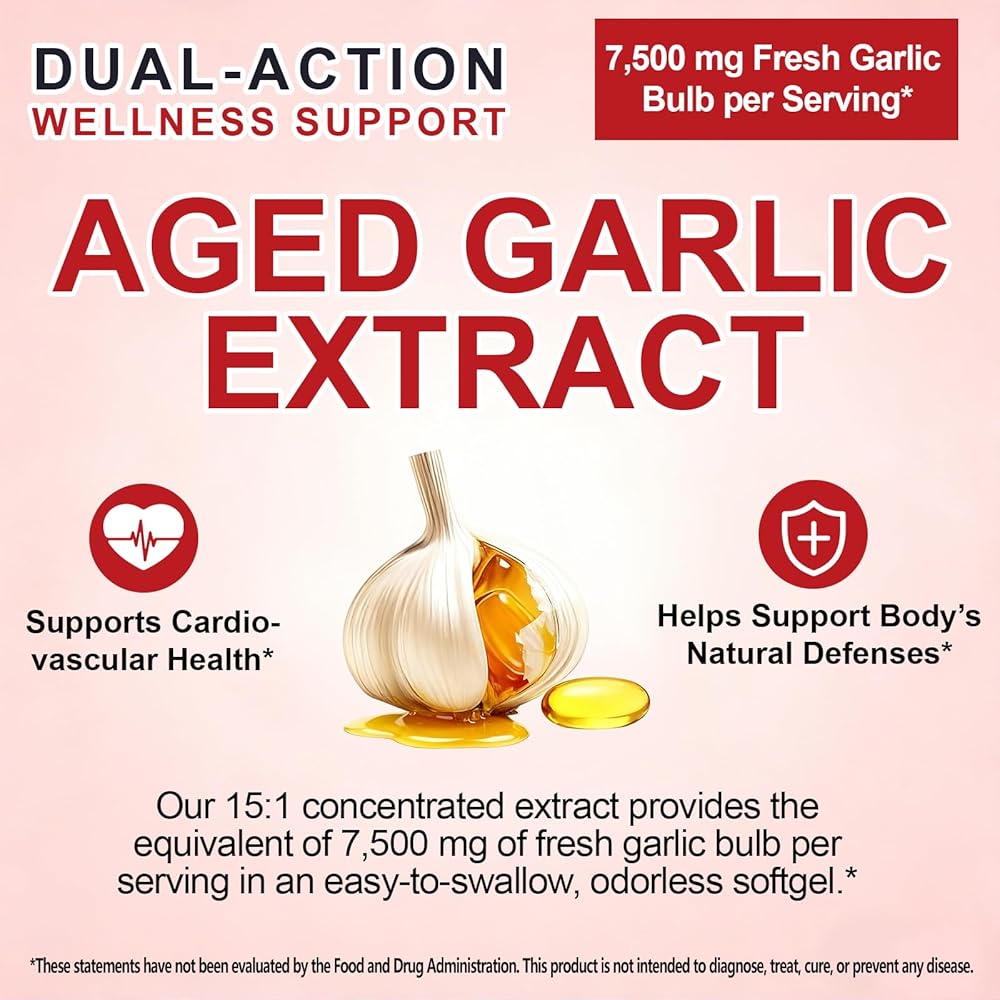 Premium Aged Garlic Extract Capsules: Each serving packs nutrition equal to 7,500 mg of fresh garlic, powered by 15:1 high-concentration aged garlic extract.